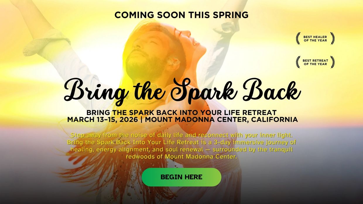Bring The Spark Back is a 3-day, soul-restoring retreat designed to help you reconnect with your authentic self, reignite passion for life, and restore balance across mind, body, and spirit.